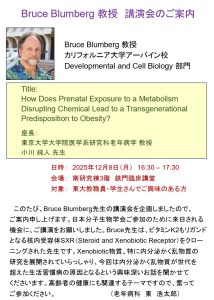 カリフォルニア大学アーバイン校 Developmental and Cell Biology 部門のBruce Blumberg 教授をお招きし、老年病科にて下記の講演会を開催しました。